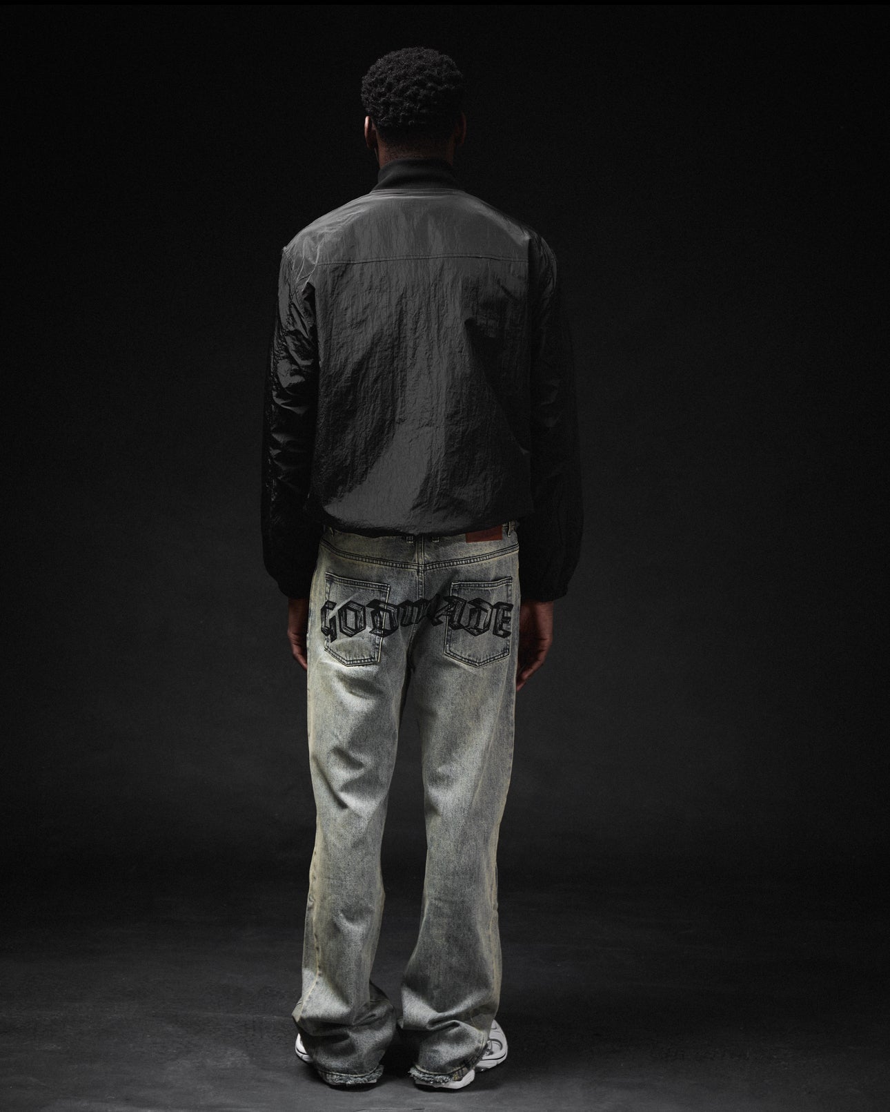GM LOGO - WASHED BLUE ZIP HOODIE