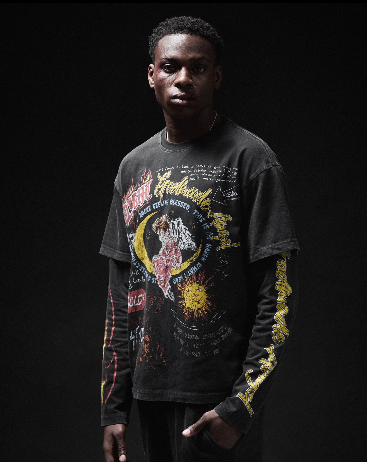 ANGEL - WASHED BLACK LONG SLEEVE T-SHIRT