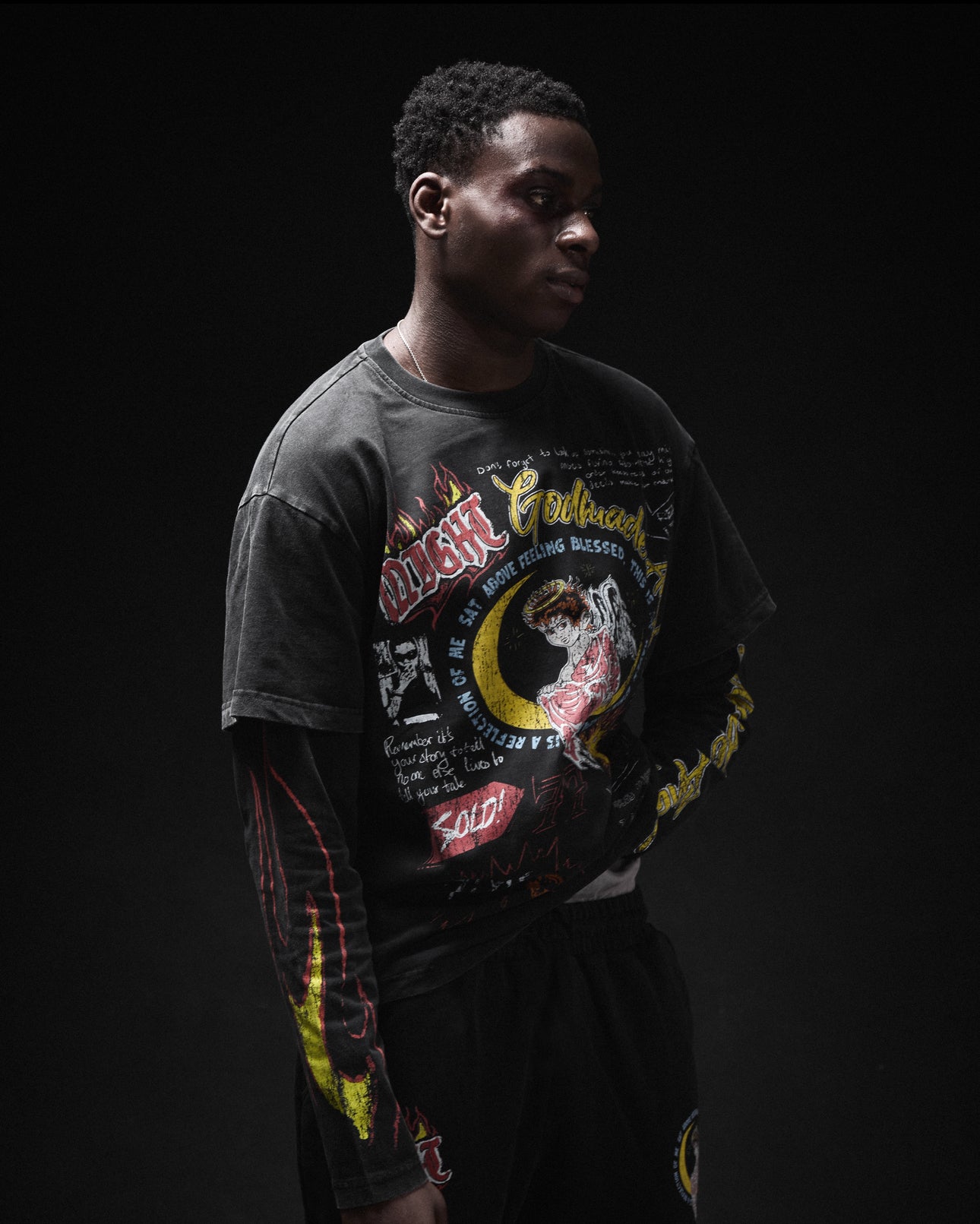 Angel long sleeve black t-shirt has a slightly oversized boxy fit. featuring improved cotton to ensure quality and longevity. Finishing this piece with trailblazer print on the front of the t-shirt and God Made on both arms of the long sleeve.
