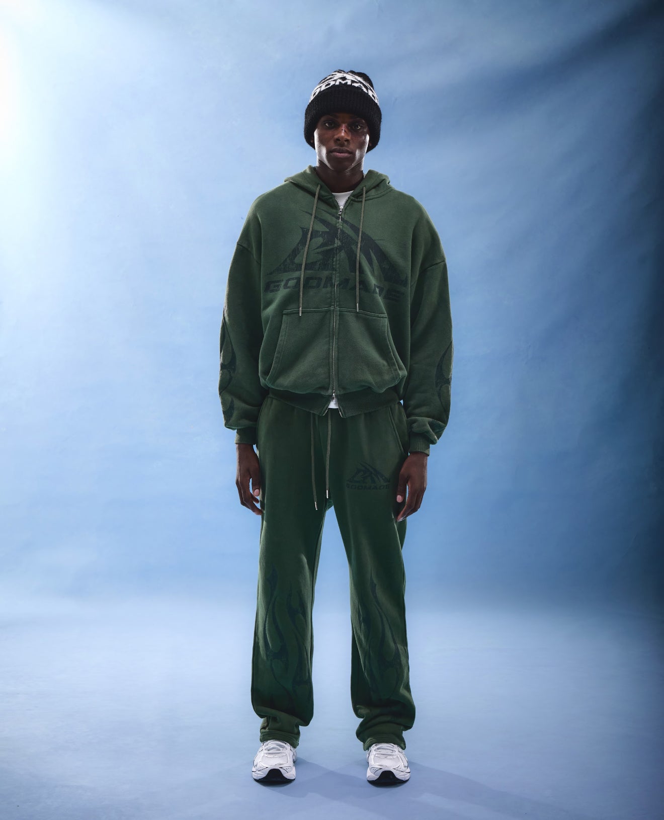GM LOGO - GREEN WASHED ZIP HOODIE