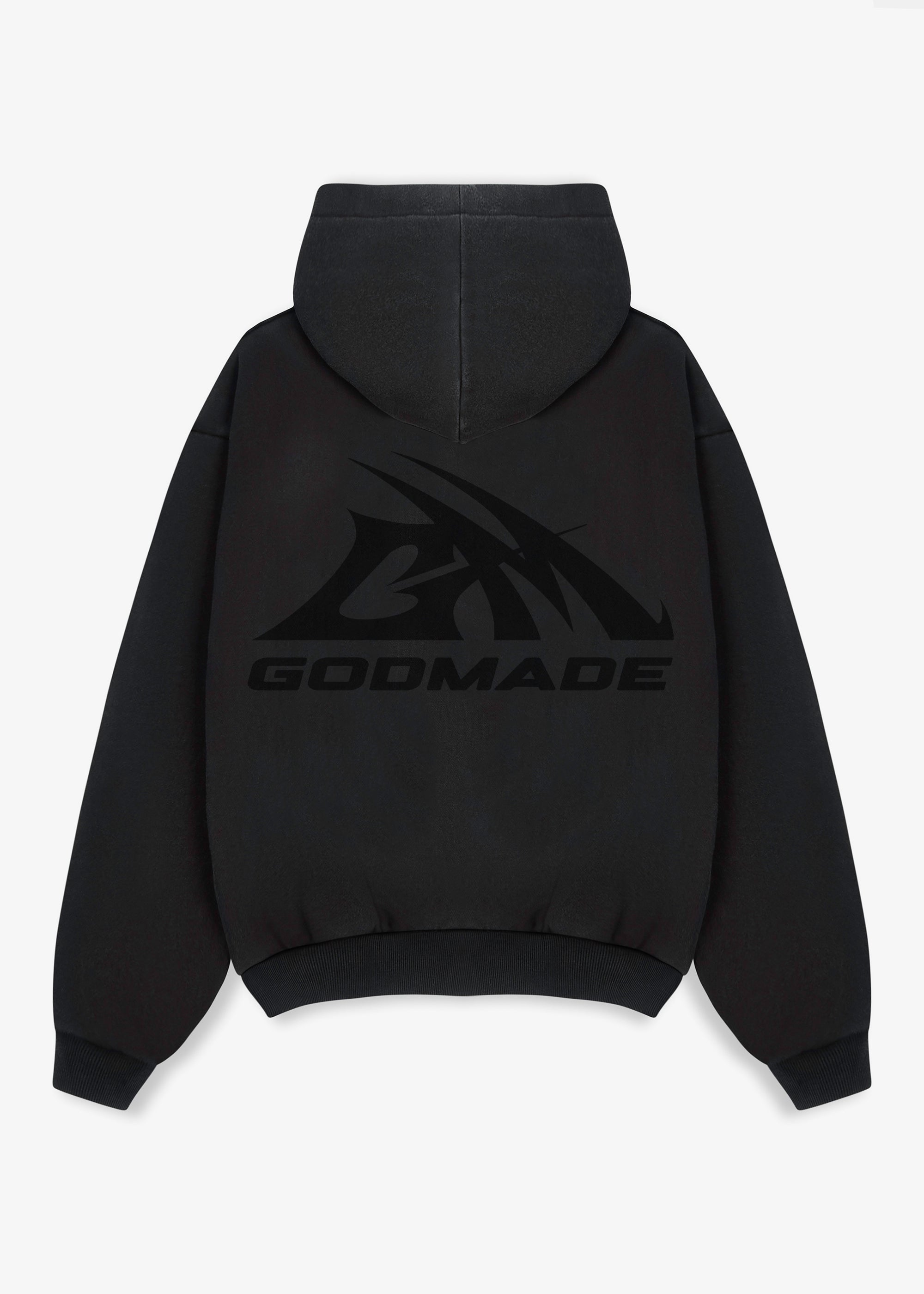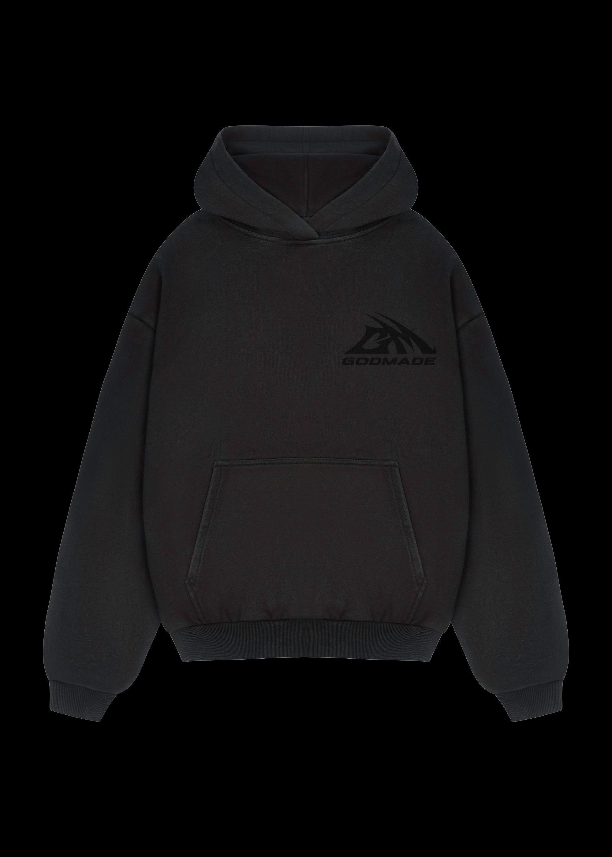 GM logo triple black hoodie fits slightly oversized fit. featuring improved cotton to ensure quality and longevity.