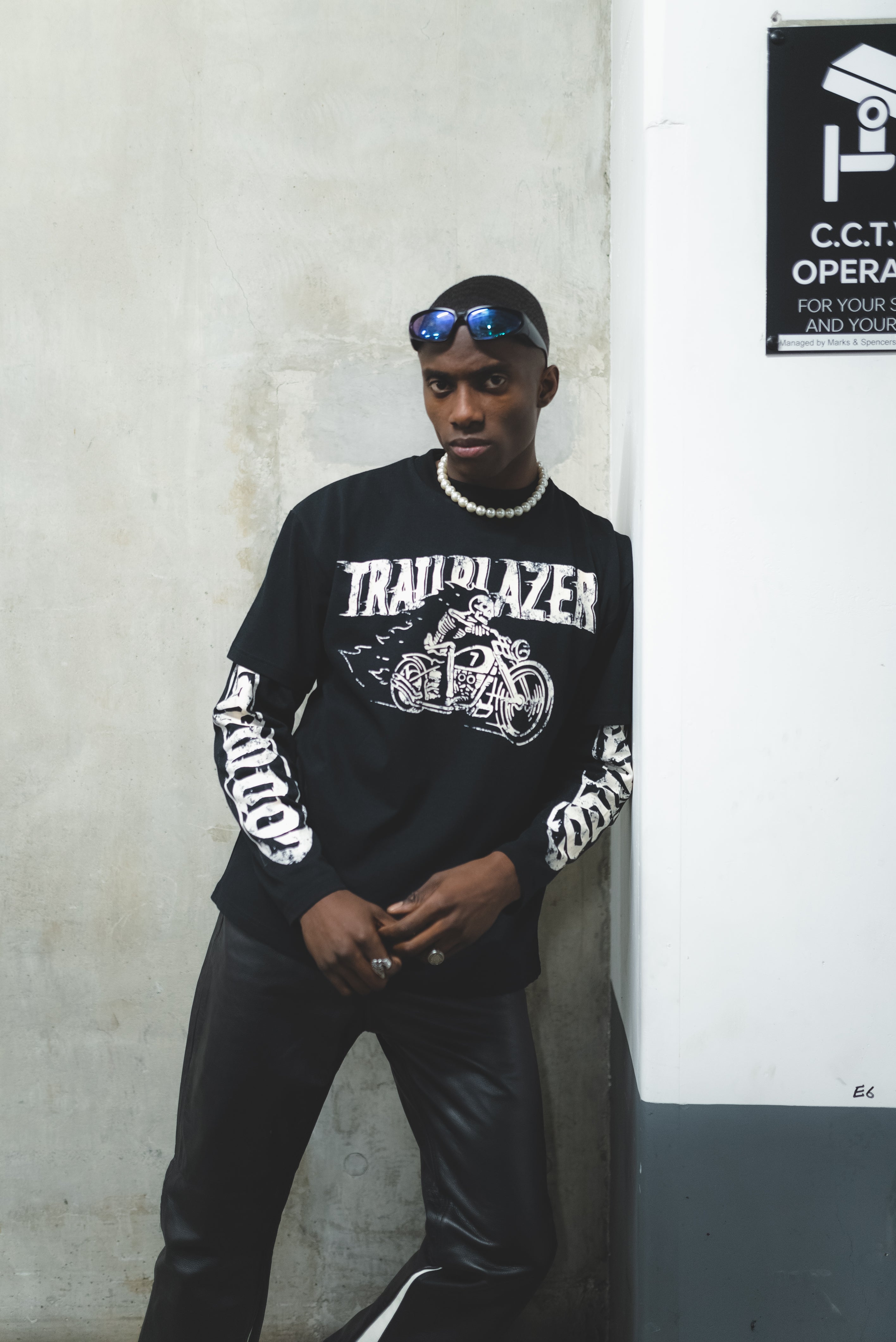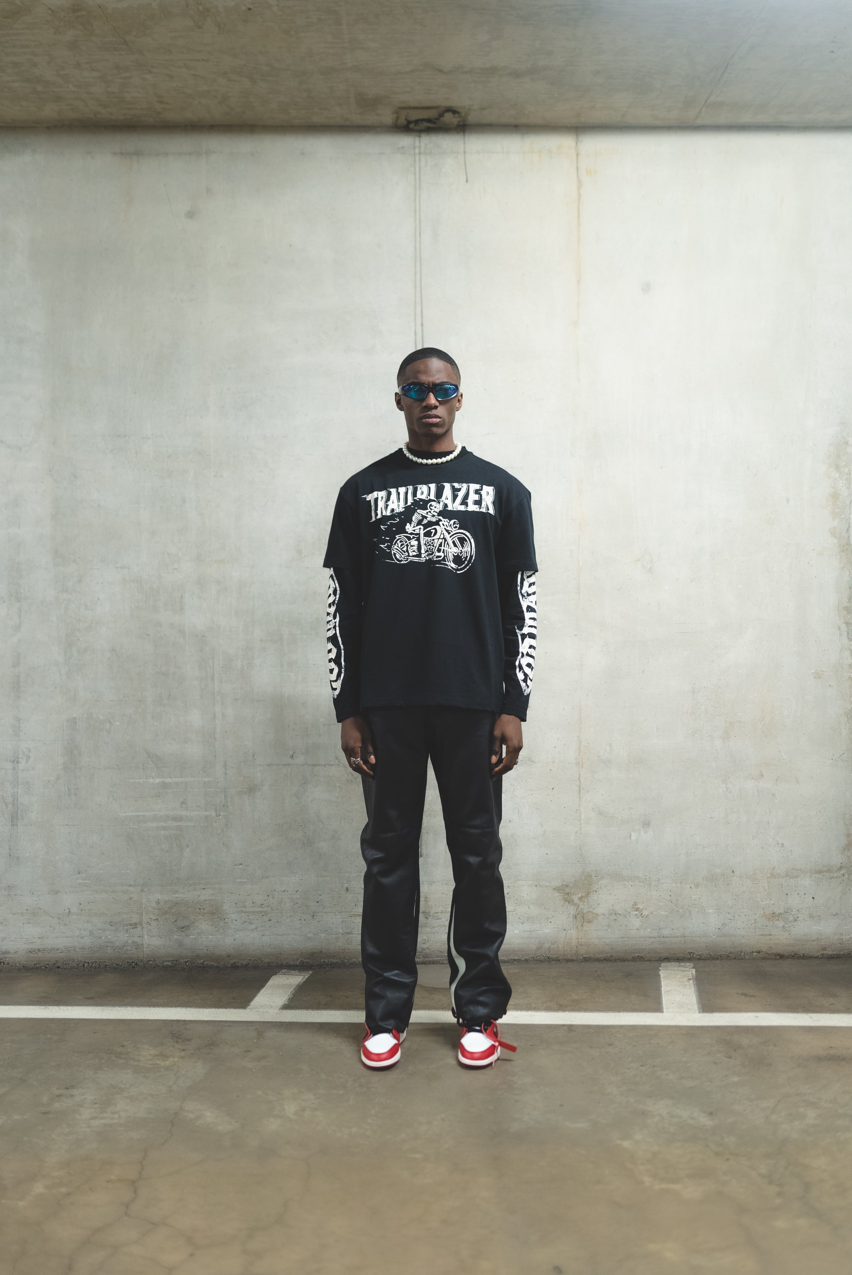 Trailblazer long sleeve black t-shirt has a slightly oversized boxy fit. featuring improved cotton to ensure quality and longevity. Finishing this piece with trailblazer print on the front of the t-shirt and God Made on both arms of the long sleeve.