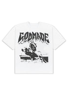 City of God, This design has been hand screen printed in a flat Off-Black colour and slightly raised. T-shirt slightly oversized boxy fit. featuring improved cotton to ensure quality and longevity.