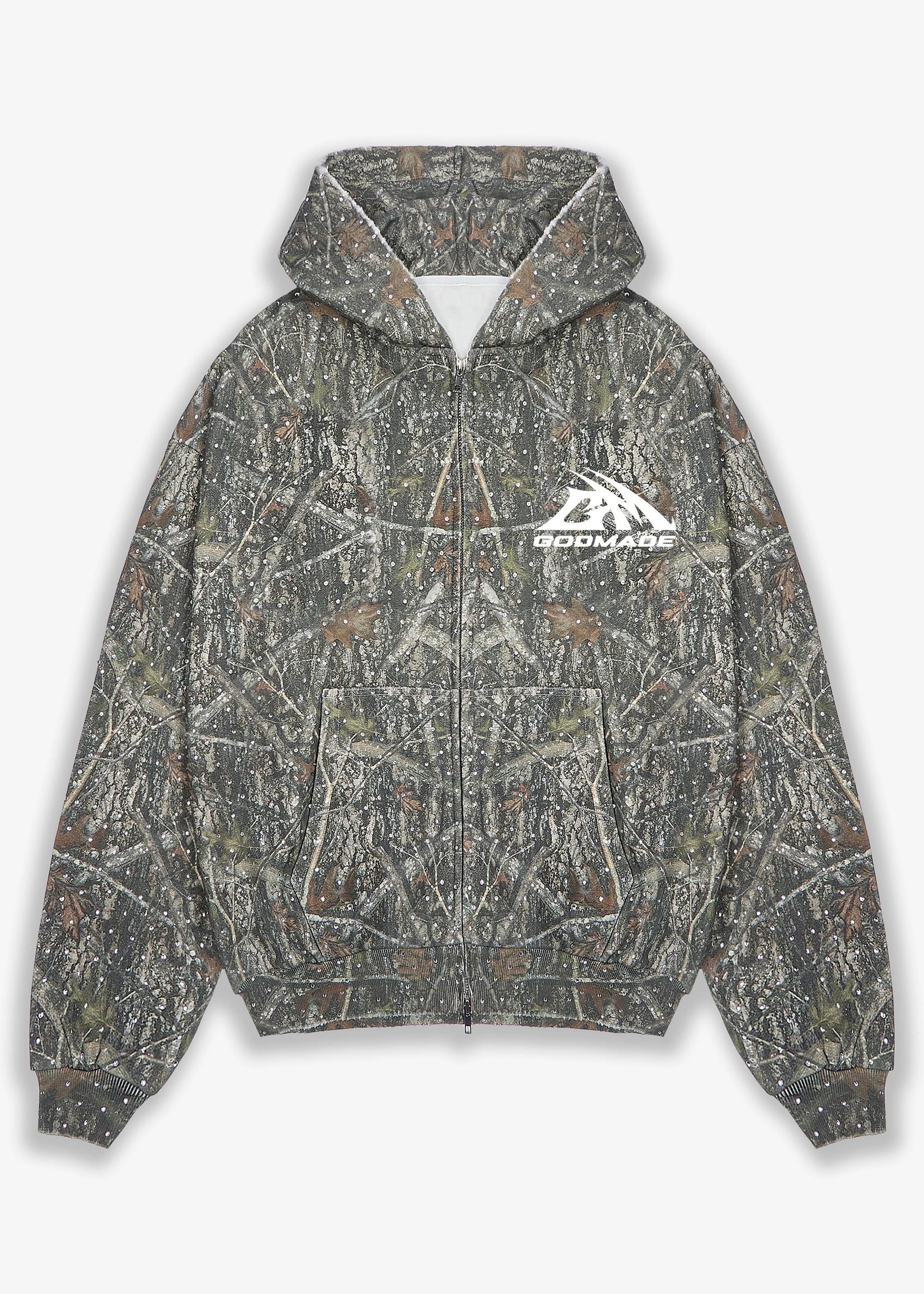 FOREST CAMO RHINESTONE - ZIP HOODIE