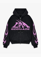 Gm logo pink black hoodie cotton. Oversized fit with ribbed hem, and cuff. Made from heavy-weight cotton to ensure quality and longevity. Vintage washed black finishing this piece with GM logo design on both arms and front.