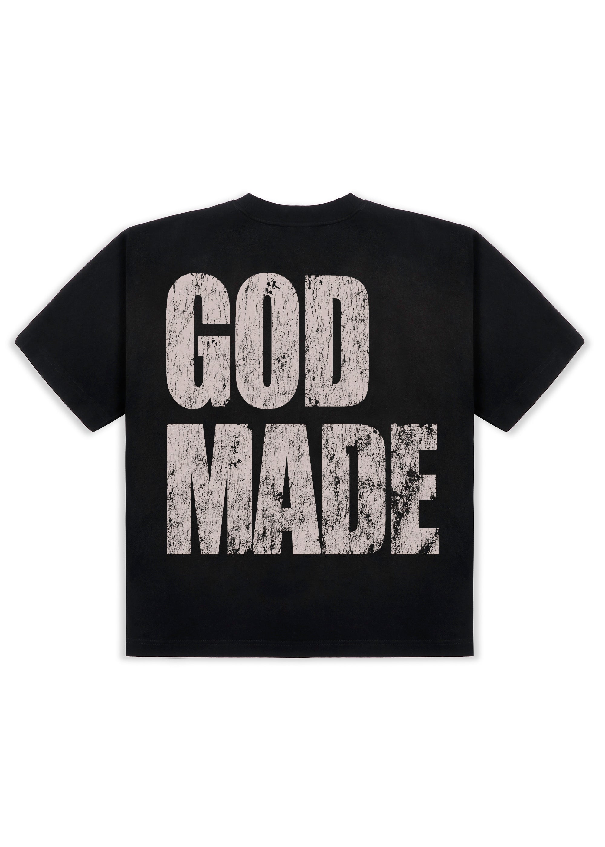 Basement brawler black t-shirt fits slightly oversized with a relaxed, boxy fit. Made from luxury cotton featuring soft and breathable fabric ensure quality and longevity. Finishing this piece with brawler graphic on the front and godmade on the back.