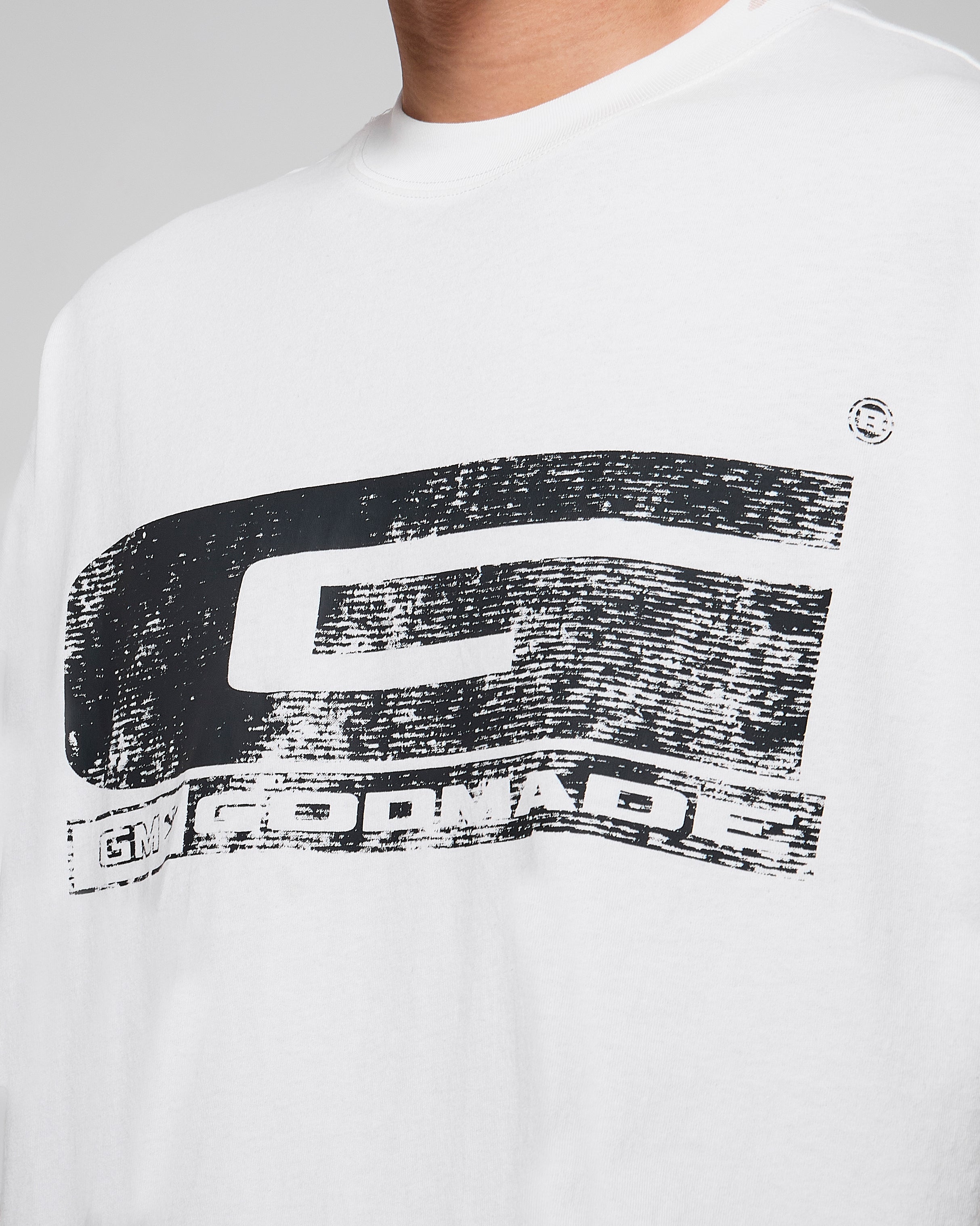 The piece features the signature G graphic printed across the chest, forming the centre of the garment’s visual identity and reinforcing the bold GODMADE aesthetic.