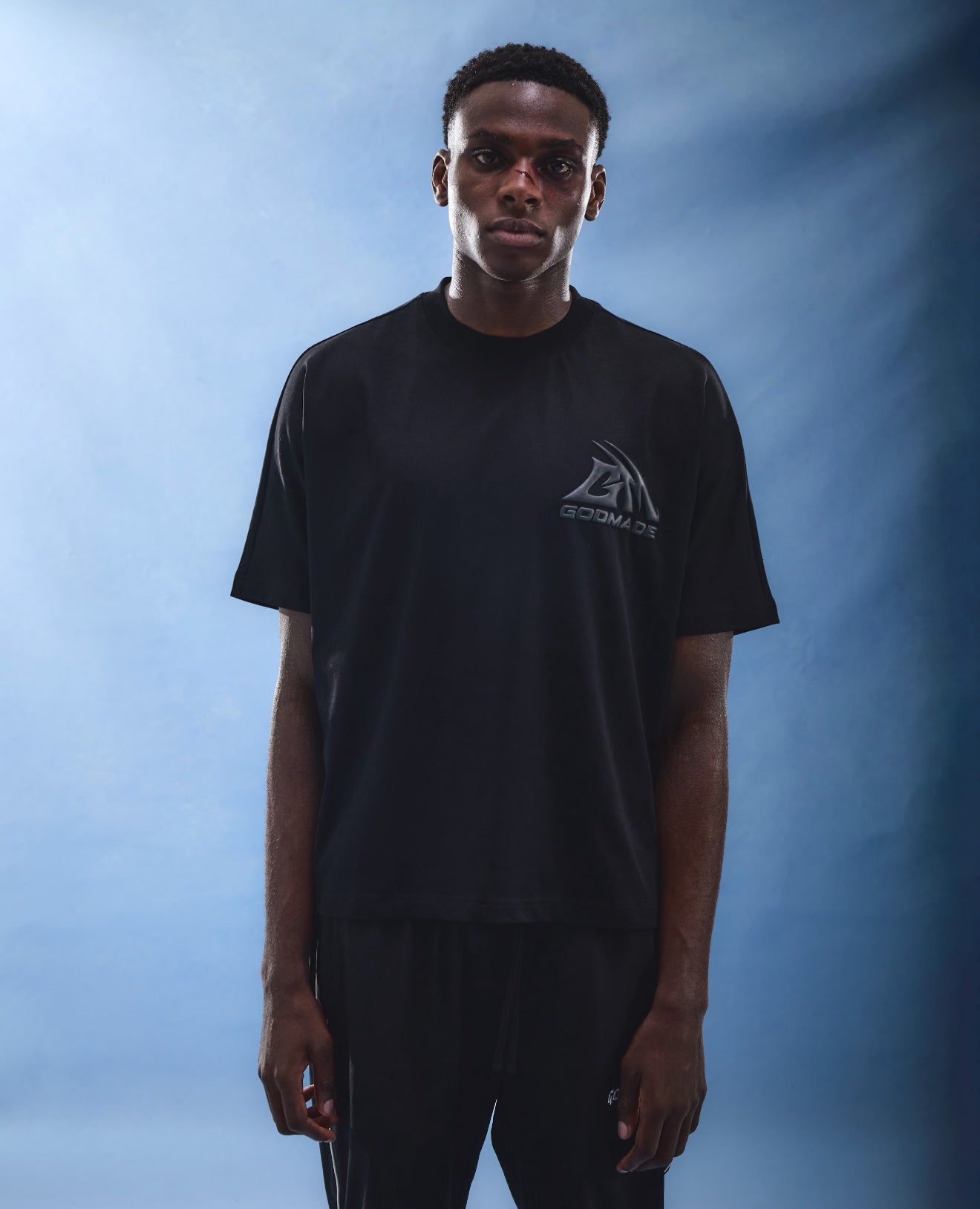 GM logo triple black t-shirt fits slightly oversized with a relaxed, boxy fit. Made from luxury cotton featuring soft and breathable fabric ensure quality and longevity. Finishing this piece with GM logo front and back.