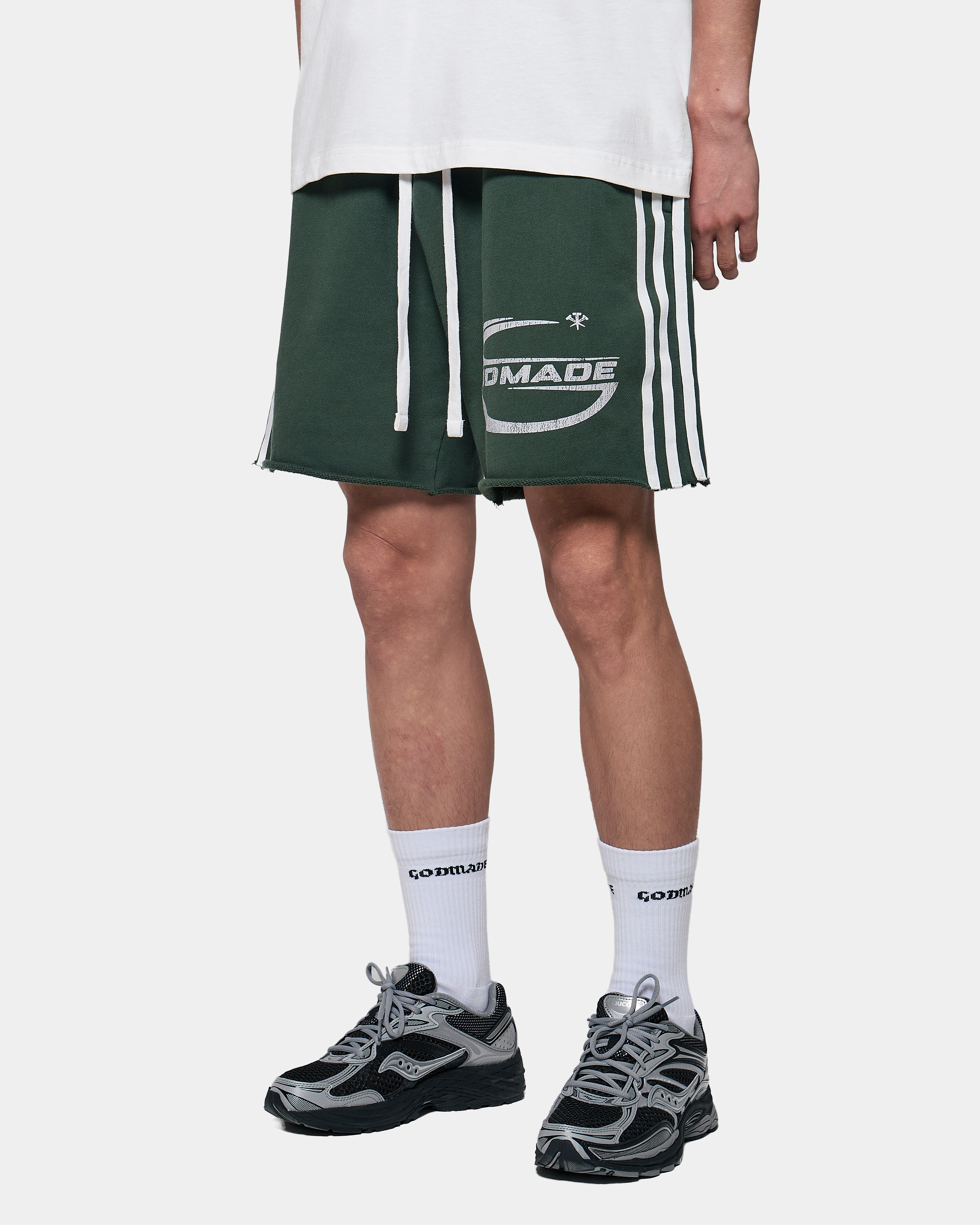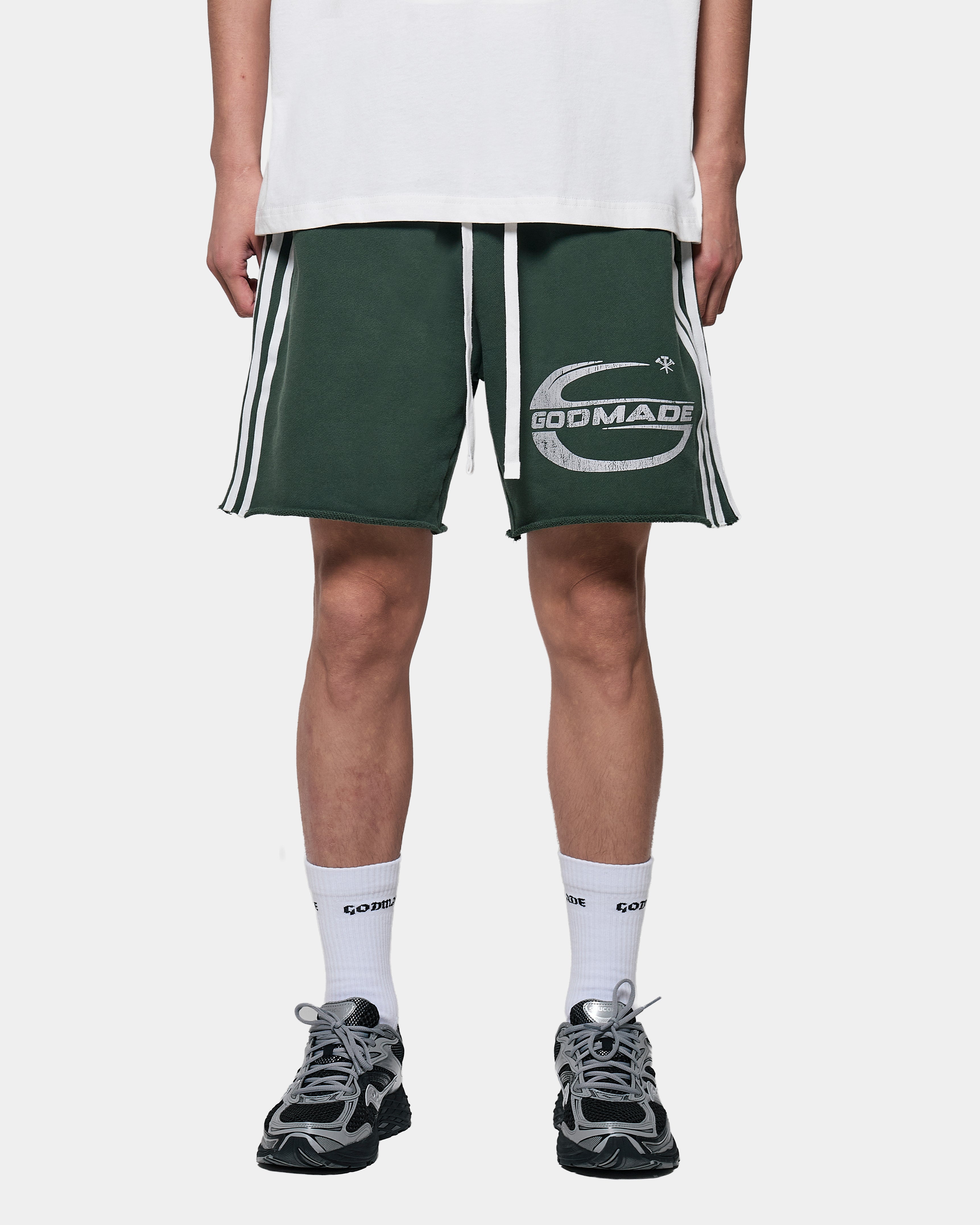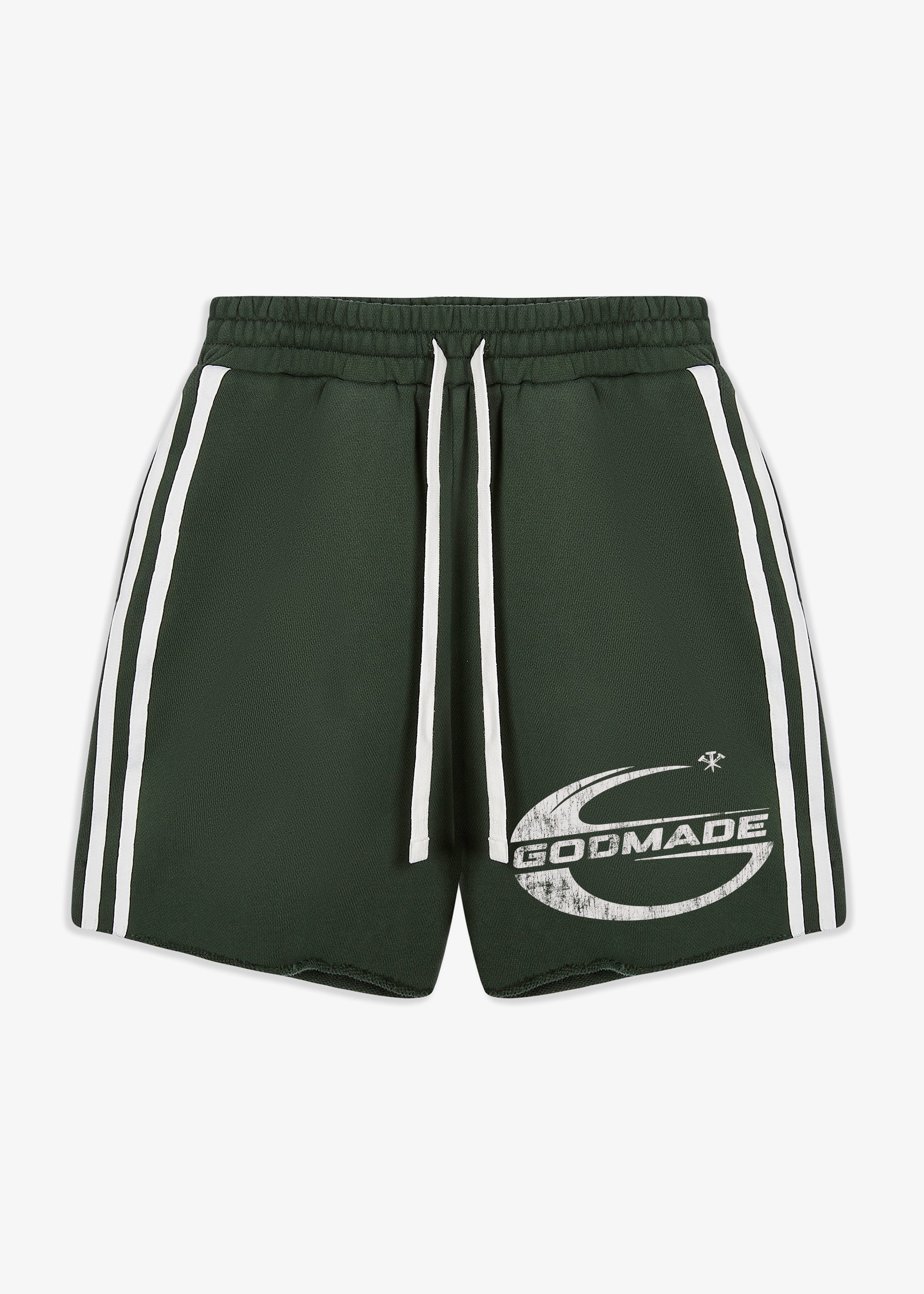 A screen printed GODMADE graphic forms part of the garment’s visual composition, reinforcing the bold identity of the piece.