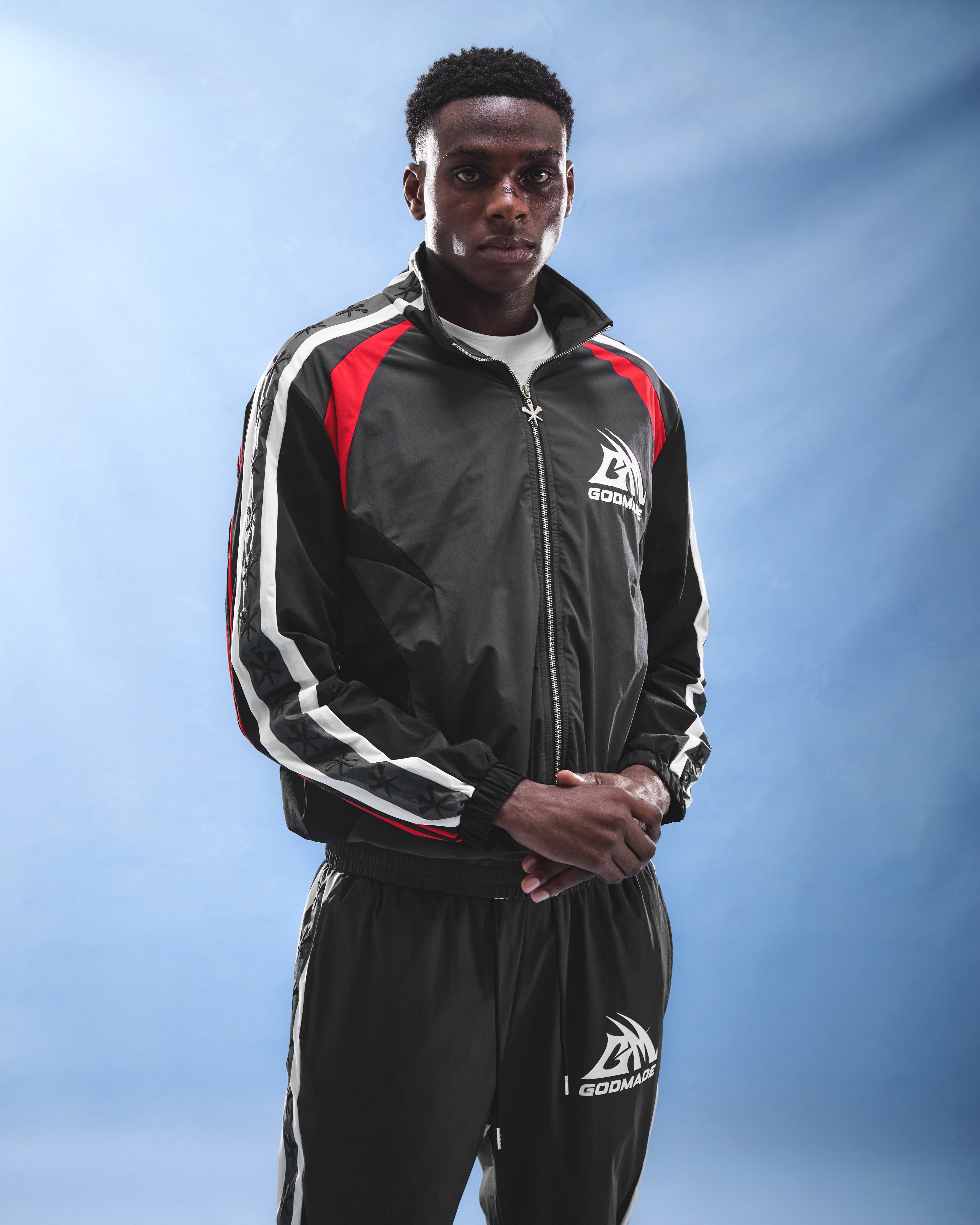 Retro track jacket, designed with modern athletic silhouette, this jacket combines nostalgic track-inspired with streetwear edge. Lightweight yet durable fabric for all day wear and flexibility. Full-zip closure, elasticated hem and cuffs. Finishing the jacket with Godmade logo.
