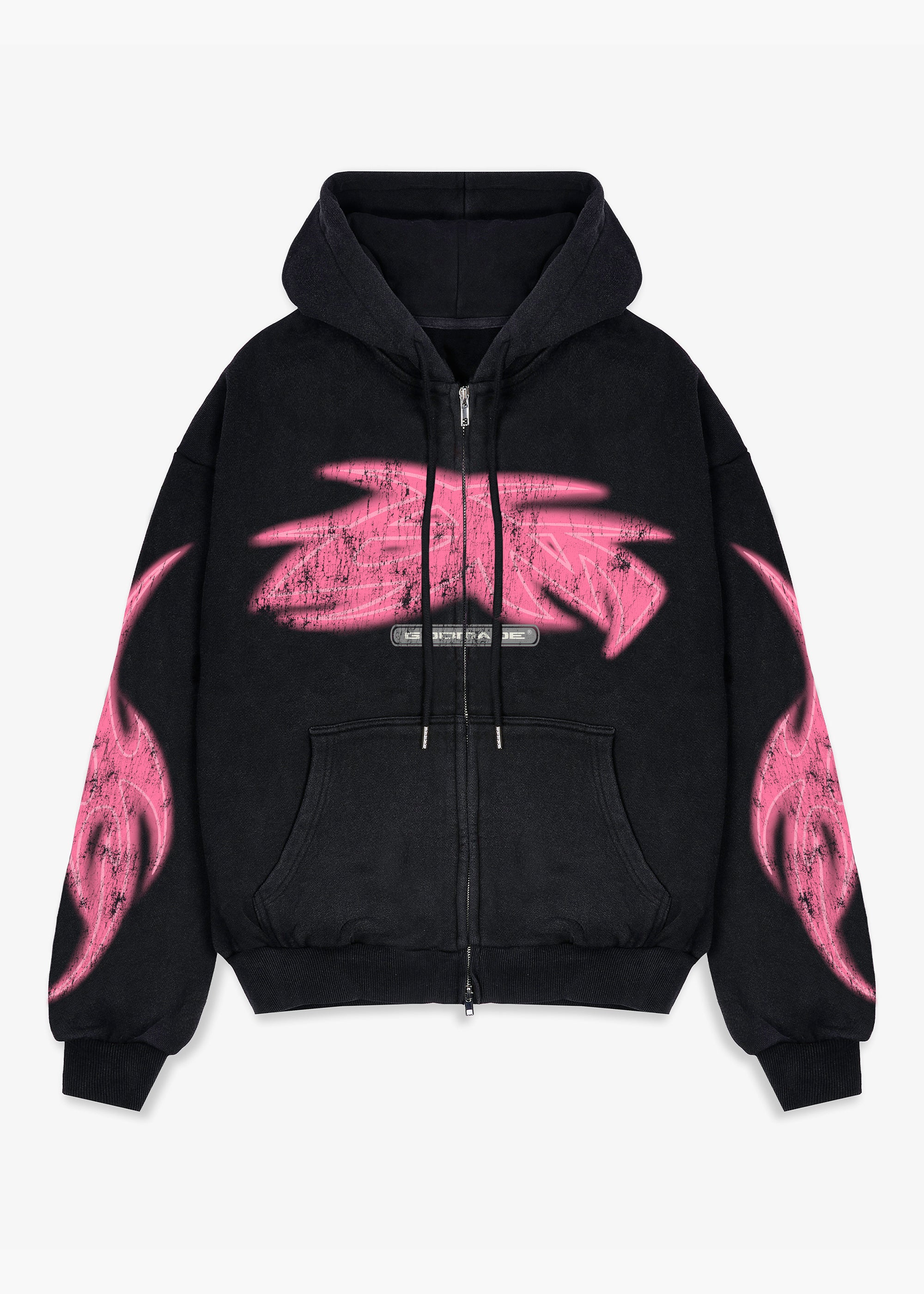 Constructed from premium cotton and finished with a washed grey treatment, the Vivid Zip Hoodie is designed to deliver depth, texture, and character throughout the garment.