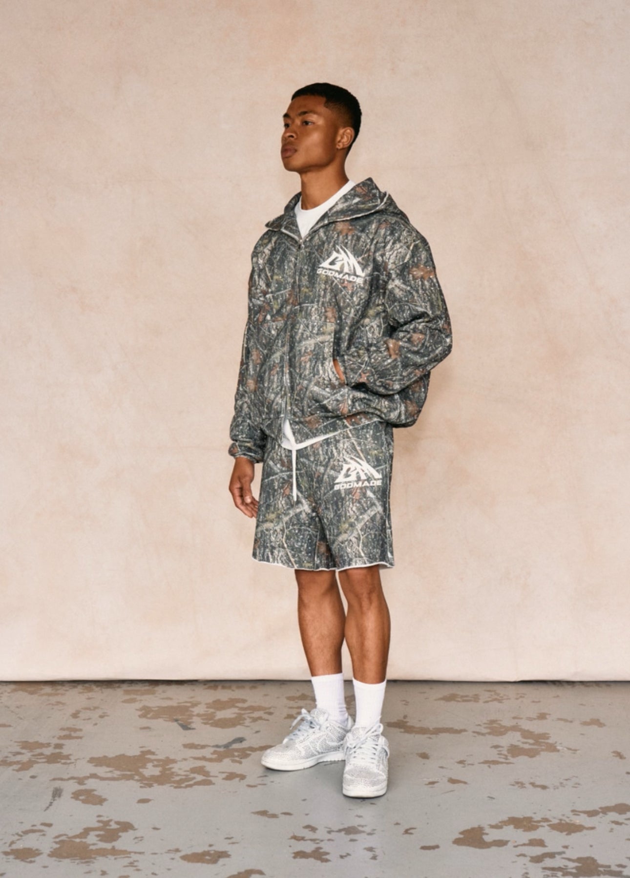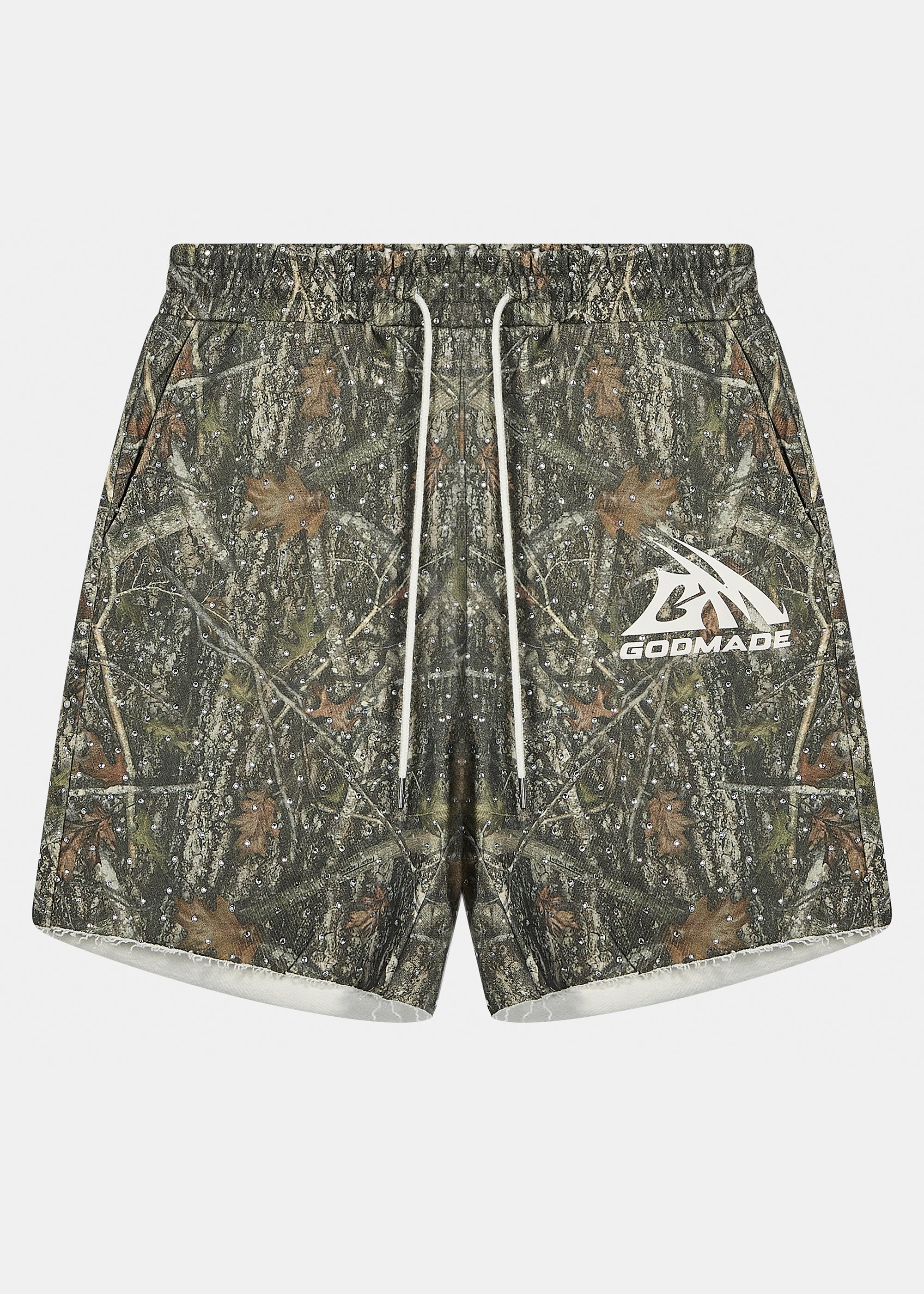 Forest camo rhinestone shorts fits slightly oversized fit. featuring improved cotton to ensure quality and longevity.
