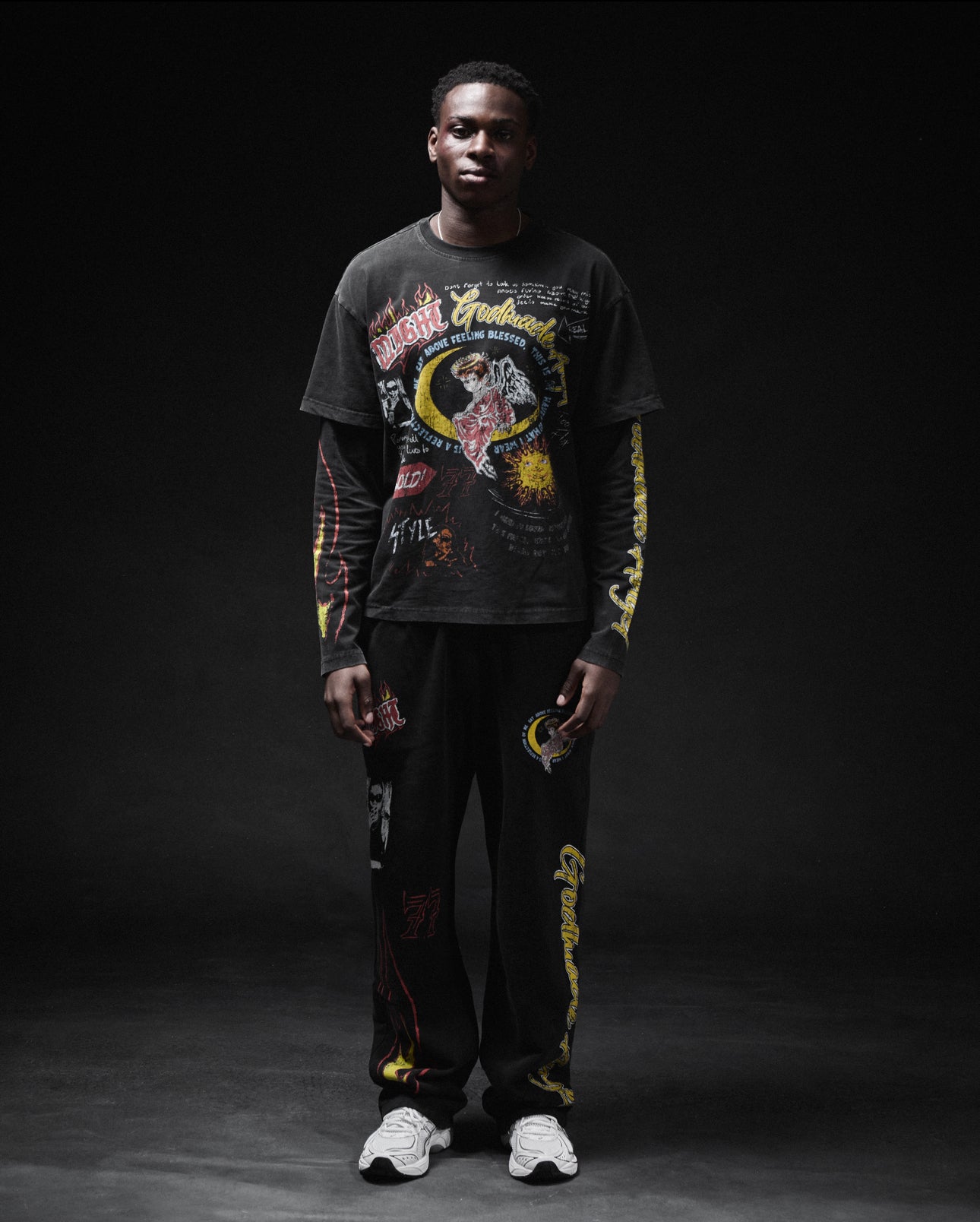 Angel long sleeve black t-shirt has a slightly oversized boxy fit. featuring improved cotton to ensure quality and longevity. Finishing this piece with trailblazer print on the front of the t-shirt and God Made on both arms of the long sleeve.