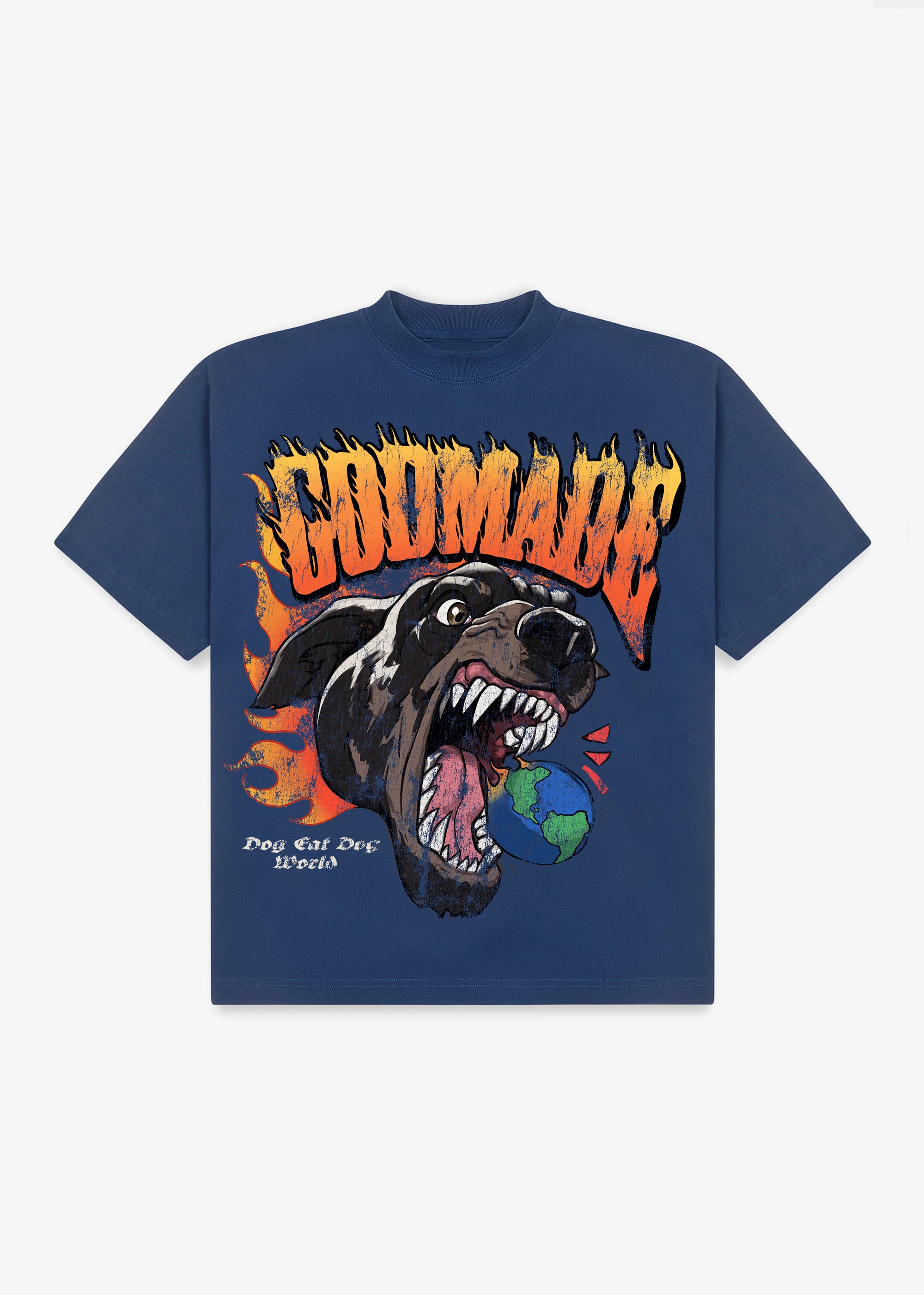 Dog world blue washed t-shirt fits slightly oversized with a relaxed, boxy fit. Made from luxury cotton featuring soft and breathable fabric ensure quality and longevity. Finishing this piece with dog world design.