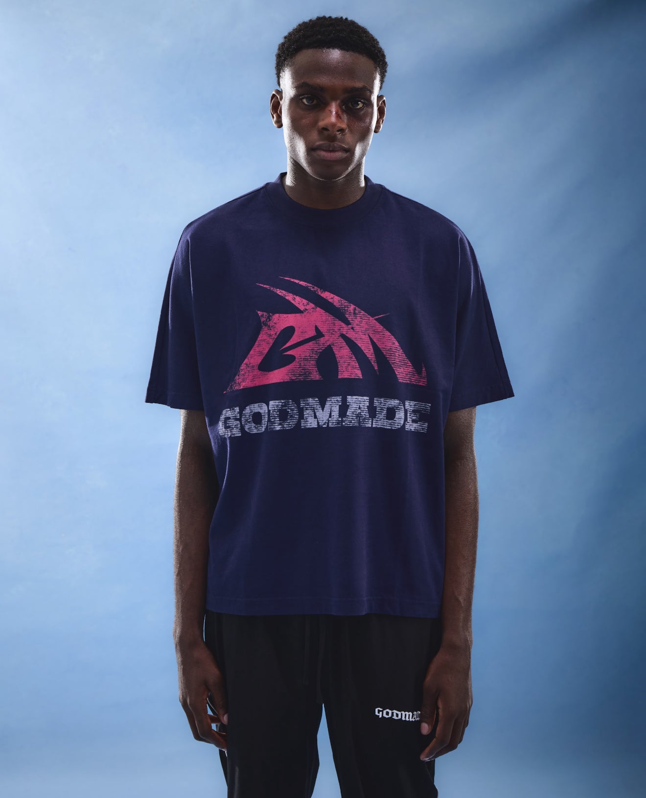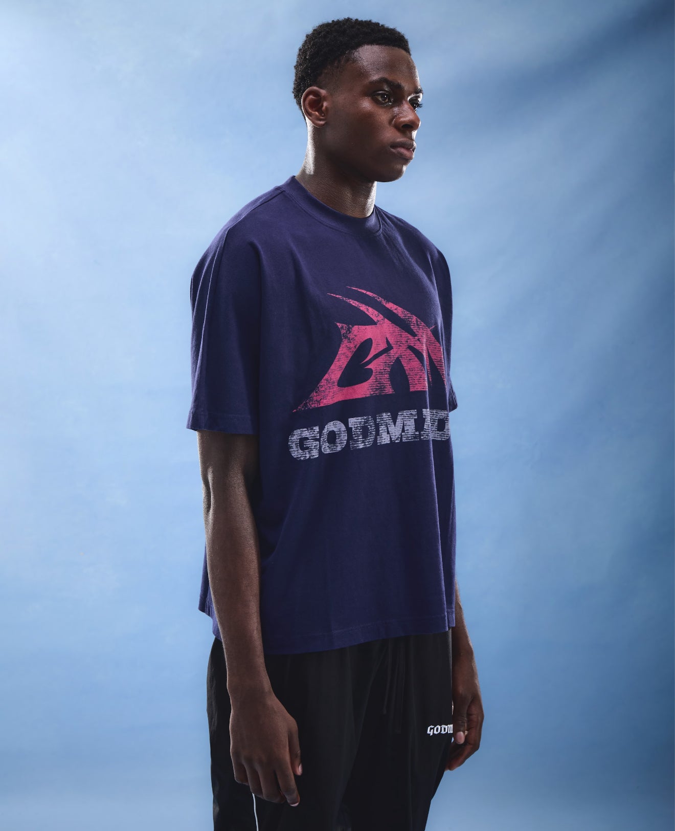 GM logo navy blue t-shirt fits slightly oversized with a relaxed, boxy fit. Made from luxury cotton featuring soft and breathable fabric ensure quality and longevity. Finishing this piece with GM logo.