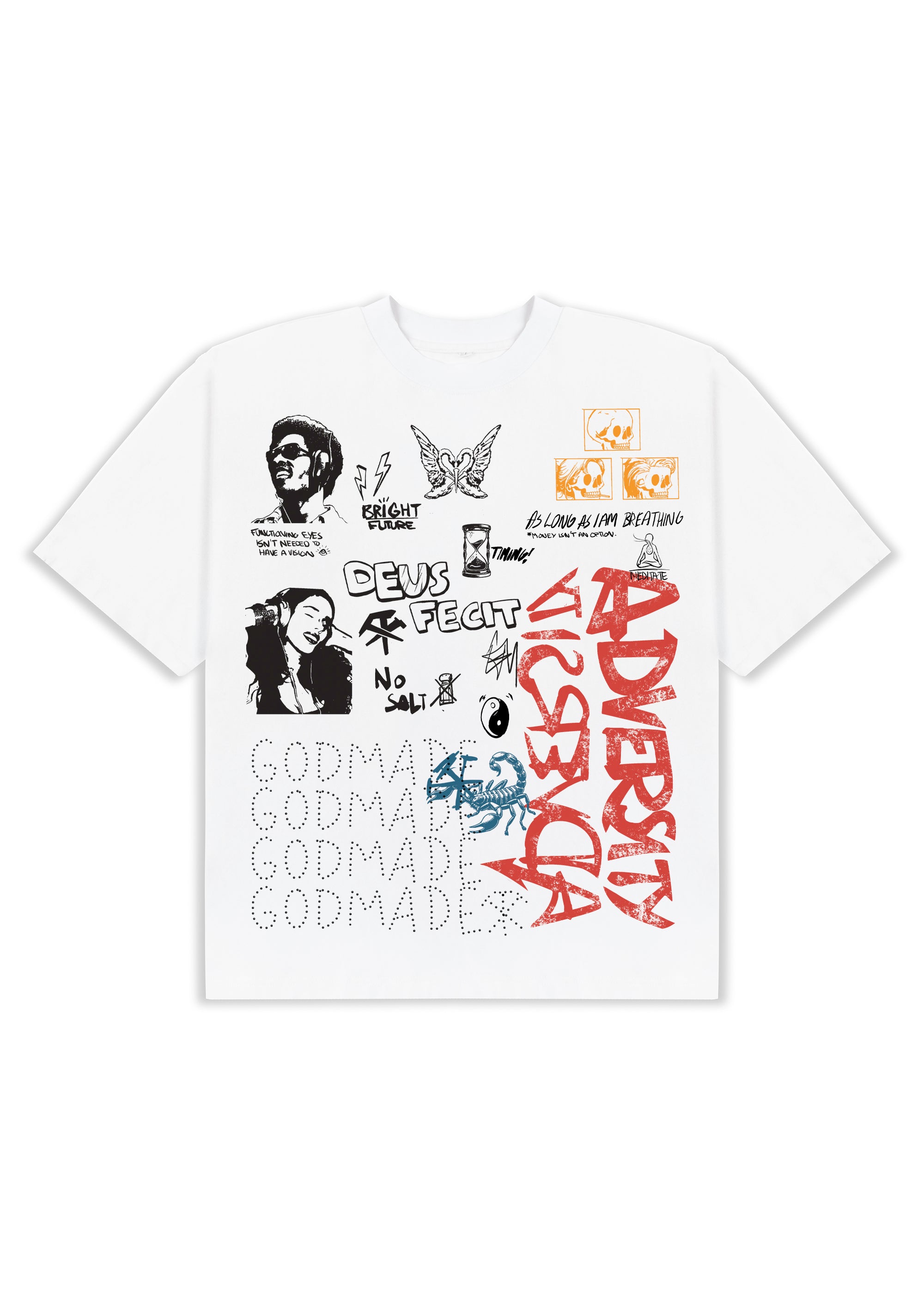 Vision white t-shirt fits slightly oversized and distressed with a relaxed, boxy fit. Made from luxury cotton featuring soft and breathable fabric ensure quality and longevity. Finishing this piece with vision graphic.